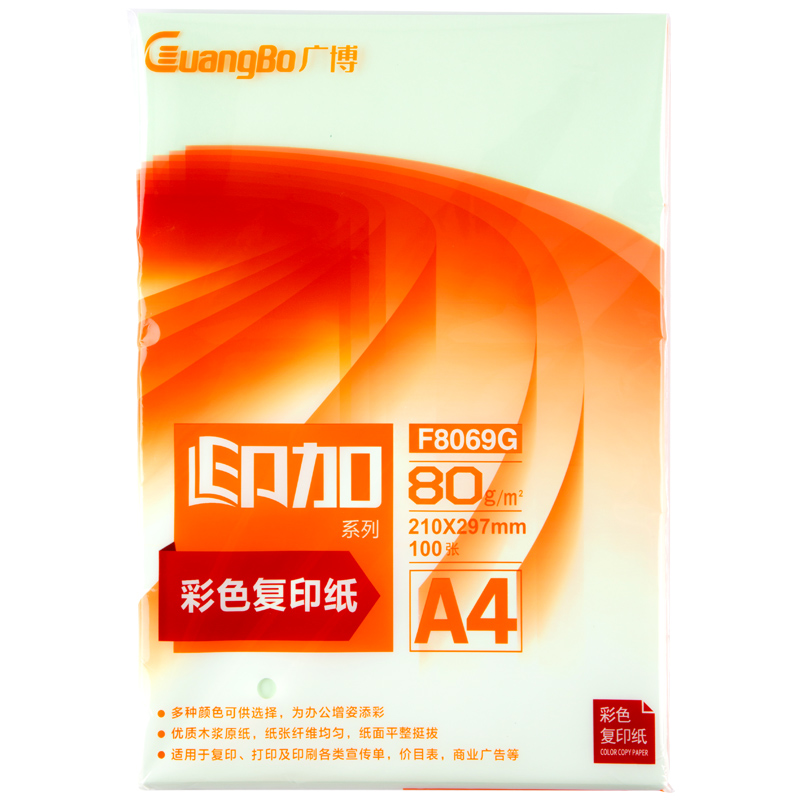 彩色复印纸(浅色系)80g A4(100张/包)浅绿F8069G